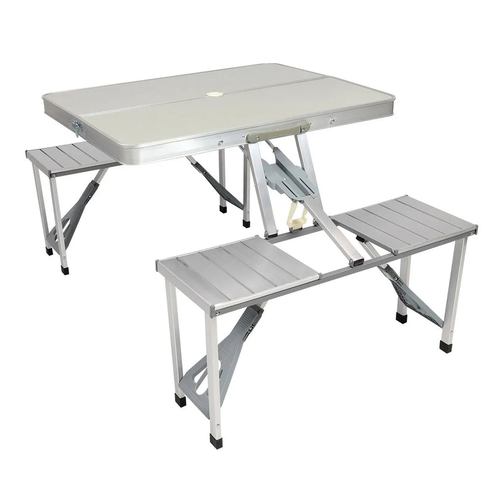 Eleve seu Acampamento com a Mesa Dobrável para Camping e Banquetas Integradas