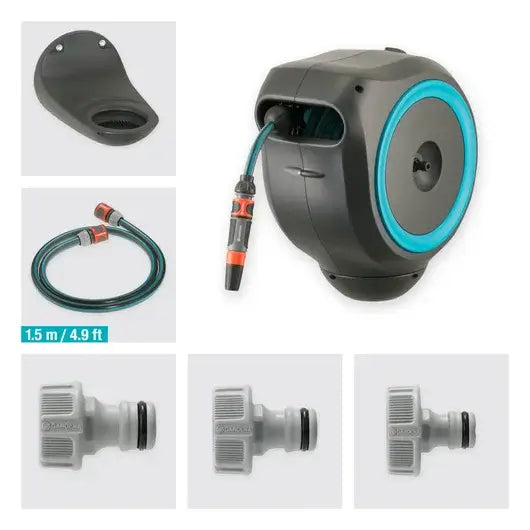 GardenHouse - Mangueira Externa Com Enrolador Retrátil, trava e Suporte Giratório 180